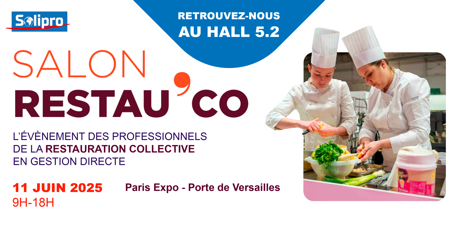 Solipro participera au Salon Restau’Co 2025, le rendez-vous incontournable des professionnels de la restauration collective en gestion directe, qui se tiendra le 11 juin 2025, de 9h à 18h, à Paris Expo – Porte de Versailles, Hall 5.2.
