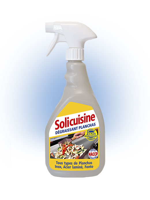 Solicuisine Dégraissant Planchas est spécialement adapté pour un dégraissage rapide de tous types de graisses cuites et dépôts huileux.